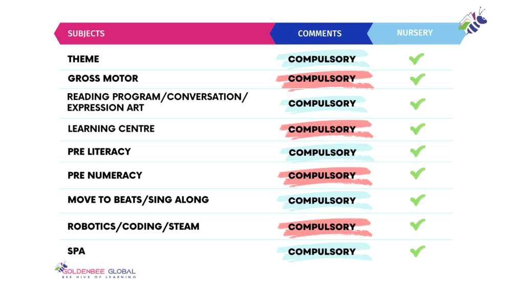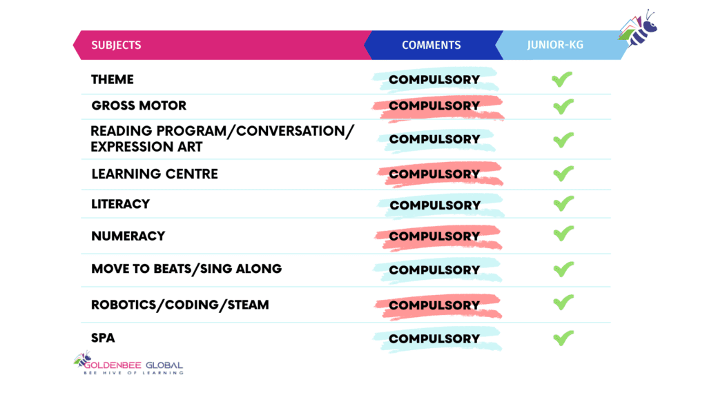 Goldenbee Global School curriculum, which is designed to provide a balanced and comprehensive education that prepares students for higher education and professional careers.